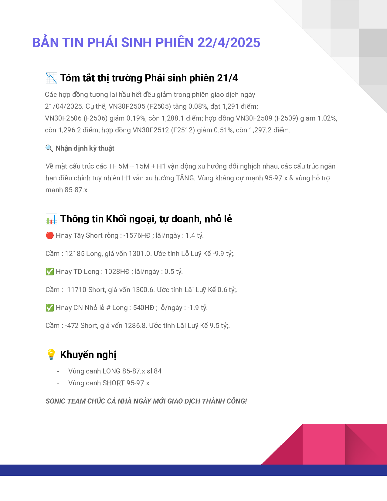 Phái Sinh ngày 22/4/2025