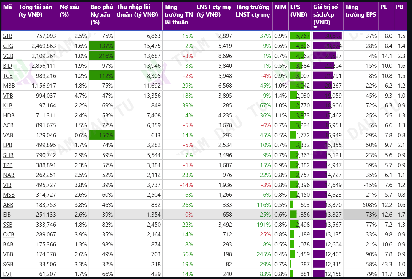 Một vài các bank nhỏ đang có định giá P/B trũng so với nhóm ngân hàng chung ( nguyên nhân chủ yếu do những lo ngại về chất lượng tài sản) nên được quan tâm và chú ý hơn.