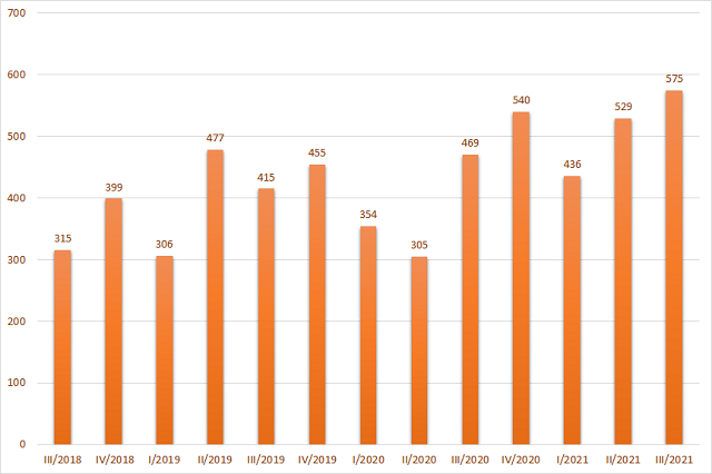 ước tính quý III, tổng tổng doanh thu thuần và lợi nhuận trước thuế lần lượt đạt 1.858,6 tỷ đồng và 574,6 tỷ đồng, tương ứng ước tăng 23,47% và 22,4% so với cùng kỳ năm 2020. Đây cũng là quý có lợi nhuận trước thuế cao nhất của doanh nghiệp kinh doanh đá thạch anh này.