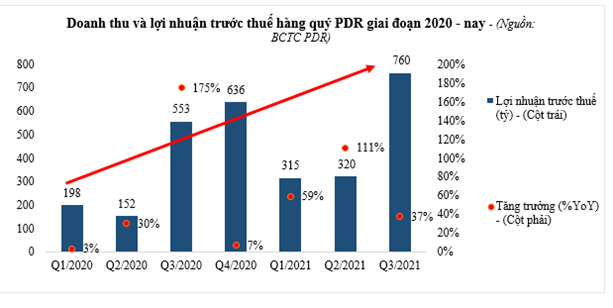 Với chiến lược kinh doanh rõ ràng, định hướng mục tiêu nhất quán, CTCP Phát triển Bất động sản Phát Đạt (HoSE: PDR) tiếp tục ghi nhận doanh thu và lợi nhuận tăng trưởng trong quý III. Theo đó, công ty cho biết đóng góp chủ yếu vào kết quả kinh doanh là dự án Khu đô thị sinh thái – kinh tế Nhơn Hội (Bình Định), đưa doanh thu thuần dự kiến đạt 1.427 tỷ đồng, tăng 8,4% so với cùng kỳ năm trước. Lợi nhuận trước thuế đạt 760 tỷ đồng, tăng 37%. Lợi nhuận sau thuế đạt 605 tỷ đồng, tăng 38%.
