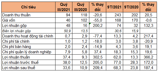 Các chi phí chiếm tỷ trọng không quá lớn nên lợi nhuận sau thuế đạt 33,6 tỷ đồng, gấp 3 lần quý III/2020.