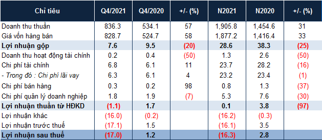 Lý giải về kết quả kinh doanh sụt giảm, Bích Chi cho biết do ảnh hưởng của dịch bệnh Covid-19 nên Công ty sản xuất trong tháng 10/2021 chỉ với 30% nhân lực trong khi chi phí bán hàng tăng.