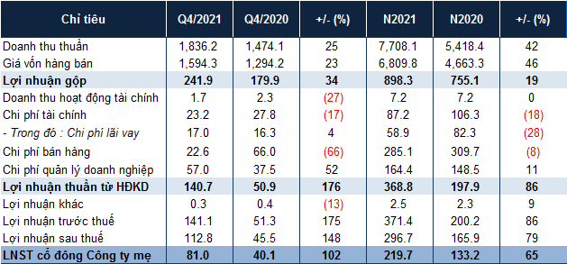 Lũy kế cả năm 2021, Bích Chi đạt gần hơn 512 tỷ đồng doanh thu thuần, giảm 14% so với cùng kỳ, trong khi chi phí bán hàng tăng 15%, lên hơn 45 tỷ đồng. Do đó, lợi nhuận ròng giảm 41% so với cùng kỳ, còn gần 55 tỷ đồng.