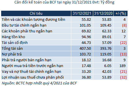 Tính đến cuối quý 4/2021, tổng tài sản của Bích Chi đạt gần 408 tỷ đồng, tăng nhẹ 3% so với đầu năm. Trong đó, chiếm tỷ trọng lớn nhất trong tổng tài sản là khoản tiền gửi có kỳ hạn hơn 101 tỷ đồng, giảm 8% so với đầu năm.
