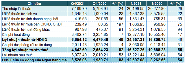 Cụ thể, tổng thu nhập hoạt động vượt 16,758 tỷ đồng, tăng 22% so với cùng kỳ năm trước, trong đó thu nhập dịch vụ tăng mạnh 103%. Đặc biệt, thu nhập dịch vụ tại ngân hàng mẹ gấp hơn 3 lần cùng kỳ nhờ sự đóng góp tích cực từ hoạt động kinh doanh bảo hiểm - ngân hàng và dịch vụ thanh toán.