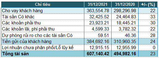 Tại 31/12/2021, tổng tài sản hợp nhất đạt hơn 374 nghìn tỷ đồng, tăng 17% so với cùng kỳ năm trước. An toàn vốn, thanh khoản được đảm bảo. Ngân hàng đã tăng cường trích lập đủ 100% dự phòng cho nợ được cơ cấu do dịch Covid-19, sớm hơn tiến độ 2 năm. Vốn chủ sở hữu đạt 30,790 tỷ, tăng 25% giúp hệ số an toàn vốn CAR (chuẩn Basel II) đạt trên 14%. Các tỷ lệ an toàn thanh khoản khác đều tốt hơn mức quy định của NHNN.