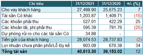 Số dư tiền và các khoản tương đương tiền, các khoản tiền gửi nắm giữ đến ngày đáo hạn tại các ngân hàng đạt 17,249 tỷ đồng, tăng 49.2% so với cuối năm 2020.