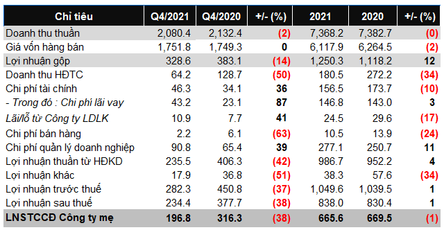 Tính đến quý 4/2021, Tập đoàn đã thực hiện thanh toán tổng giá trị vốn gốc và lãi vay gần 29,926 tỷ đồng cho các khoản vay đến hạn và các khoản vay tất toán trước hạn từ nguồn tiền mặt sẵn có và nguồn tiền thu từ việc bán hàng.