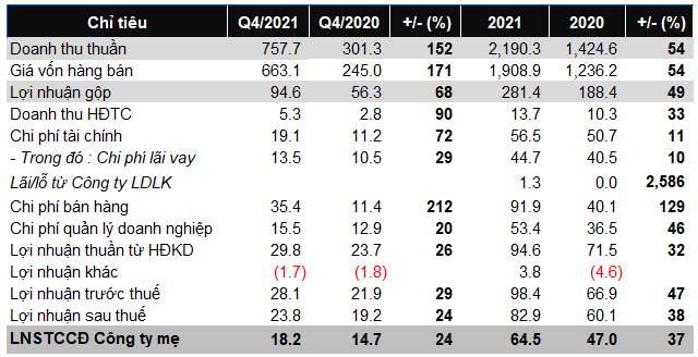 Cụ thể, tổng doanh thu hợp nhất bao gồm doanh thu từ bán hàng và thu phí cung cấp dịch vụ đạt hơn 14,967 tỷ đồng, tăng gần 186% so với năm 2020. Trong đó, doanh thu từ bán hàng đạt gần 13,511 tỷ đồng, tăng 264%, được ghi nhận từ việc bàn giao các dự án như NovaHills Mui Ne, Saigon Royal, Aqua City, NovaWorld Phan Thiet, NovaWorld Ho Tram, Victoria Village; doanh thu từ cung cấp dịch vụ đạt 1,457 tỷ đồng.