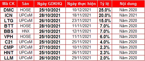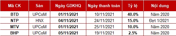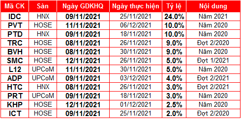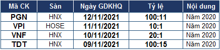 Ngày giao dịch không hưởng quyền là ngày 24/11/2021 và ngày phát hành cổ phiếu thưởng cho người lao động dự kiến là ngày 26/11/2021.