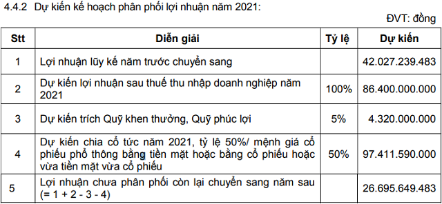 Nguồn vốn phát hành cổ phiếu để tăng vốn và trả cổ tức sẽ lấy từ lời nhuận sau thuế chưa phân phối, còn nguồn vốn phát hành cổ phiếu thưởng sẽ trích từ Quỹ khen thưởng căn cứ theo BCTC năm 2020 được kiểm toán.