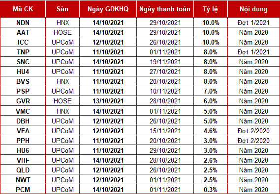 Thêm vào đó, HĐQT cũng nhất trí thông qua tỷ lệ tạm ứng cổ tức đợt 1/2021 bằng tiền là 6.19% (tương ứng mỗi cổ phiếu được nhận 619 đồng). Ngày thanh toán là 29/12/2021.