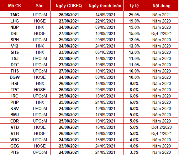 Nhằm đảm bảo dòng tiền cho hoạt động kinh doanh trong bối cảnh dịch Covid-19 tiếp tục kéo dài và diễn biến phức tạp, HĐQT CTCP Đầu tư Thế giới Di động (HOSE: MWG) vừa thông qua Nghị quyết thay đổi tỷ lệ chi trả cổ tức bằng tiền mặt xuống còn 5% (500 đồng/cp), thay vì 10% như công bố trước đó. Với hơn 475 triệu cp đang lưu hành, MWG dự kiến chi gần 238 tỷ đồng để thanh toán cổ tức cho cổ đông. Ngày chi trả là 13/09/2021.