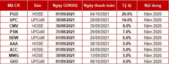 Trước đó, ĐHĐCĐ thường niên 2021 của MWG thông qua kế hoạch trả cổ tức 2020 bằng tiền mặt và cổ phiếu tổng tỷ lệ 60%. Trong đó, cổ tức tiền mặt 10% (1,000 đồng/cp) và cổ phiếu 50%.