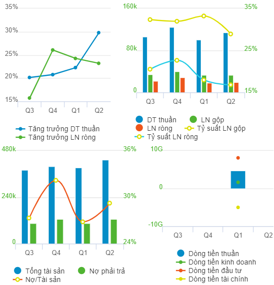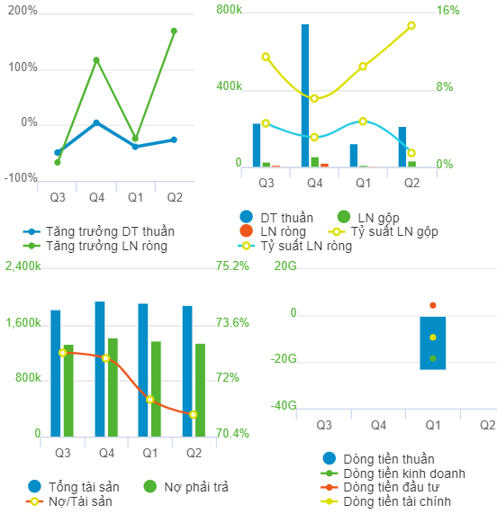 Khép lại 6 tháng đầu năm, MWG ghi nhận doanh thu thuần hợp nhất gần 62,487 tỷ đồng, tăng 12% so cùng kỳ và lãi ròng 2,551 tỷ đồng, tăng 26%. Trong cơ cấu doanh thu nửa đầu năm, Điện máy Xanh đóng góp 53.3%, mặc dù mức tăng trưởng chỉ 5% so cùng kỳ. Chuỗi siêu thị Bách hóa Xanh có mức tăng trưởng doanh thu cao nhất (+42%), song chỉ chiếm 21.4% trong cơ cấu doanh thu của MWG. Sau 6 tháng, Công ty thực hiện được 50% kế hoạch doanh thu và 54% kế hoạch LNST cả năm.