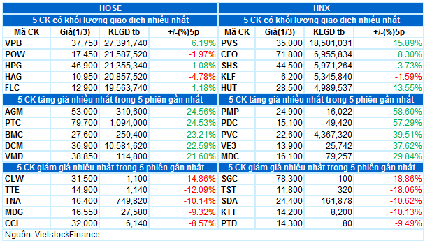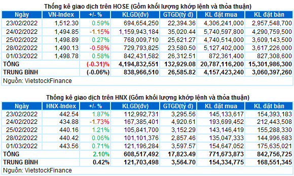 II. THỐNG KÊ THỊ TRƯỜNG NGÀY 01/03/2022