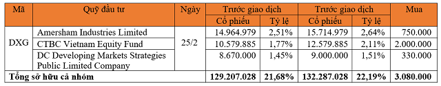 CTCP Tập đoàn Đất Xanh (DXG): Dragon Capital đã mua vào cổ phiếu DXG trong phiên giao dịch ngày 25/2.