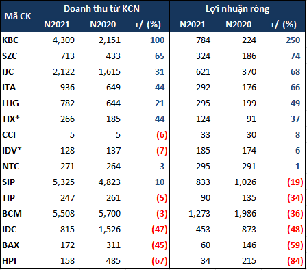 Kết quả kinh doanh của 15 DN bất động sản KCN năm 2021