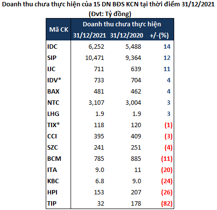 Trong bối cảnh đại dịch COVID-19 làm gián đoạn hoạt động sản xuất của nhiều doanh nghiệp, doanh thu khối doanh nghiệp bất động sản khu công nghiệp (KCN) vẫn tiếp tục ghi nhận tăng trưởng trong năm 2021. Đáng chú ý, tổng doanh thu chưa thực hiện tại thời điểm 31/12/2021 đạt hơn 23 ngàn tỷ đồng, tăng 8% so với đầu năm.