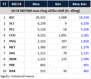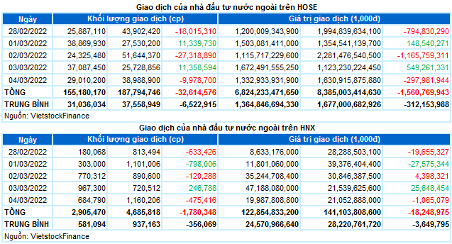 Về giao dịch của khối ngoại, khối này mua ròng tổng cộng hơn 469 tỷ đồng trên sàn HOSE, trong đó VPB và MSN là hai mã được mua ròng nhiều nhất. Trên sàn HNX, khối ngoại bán ròng 1.07 tỷ đồng, trong đó SHS là mã bị bán ròng nhiều nhất.