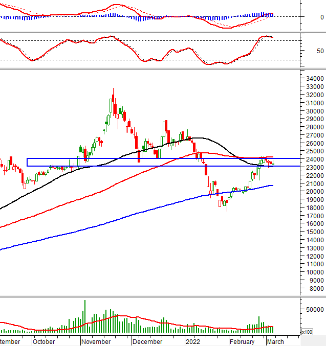 Hợp đồng VN30F2203 rơi khỏi tham chiếu sau phiên ATO và hiện tại hợp đồng vẫn đang chìm trong sắc đỏ. Điều này cho thấy sự áp đảo hoàn toàn của bên bán.