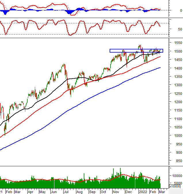 VN-Index tiếp tục biến động giằng co quanh tham chiếu trong phiên chiều. Có thể thấy, vùng 1,490-1,510 điểm (đỉnh tháng 11/2021) vẫn đang là thử thách khó cho chỉ số. VN-Index cần chinh phục vùng này để củng cố tâm lý cho nhà đầu tư.
