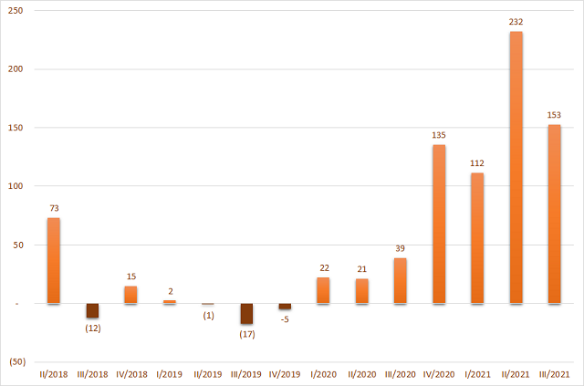 Quý III là khoảng thời gian diễn ra làn sóng Covid-19 thứ 4 tại Việt Nam, cũng là làn sóng nặng nề nhất với tâm dịch tại TP HCM và các tỉnh Nam Bộ. Covid-19 ảnh hưởng nghiêm trọng tới mọi lĩnh vực của nền kinh tế, nhiều địa phương kinh tế trọng điểm phải thực hiện giãn cách xã hội kéo dài để phòng chống dịch bệnh. Trước tình hình đó, Chính phủ phải áp dụng chính sách giãn cách ngặt nghèo, giảm mục tiêu kinh tế để tập trung đảm bảo an toàn sức khoẻ cho người dân. Kết thúc quý III, GDP quý sụt giảm 6,17%, là mức giảm sâu nhất kể từ khi Việt Nam tính và công bố GDP quý đến nay. GDP 9 tháng năm 2021 chỉ tăng 1,42% so với cùng kỳ năm trước.