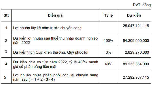 Năm qua, công ty chứng khoán đã trả cổ tức năm 2020 đợt 2 tỷ lệ 20% tiền mặt, tạm ứng cổ tức đợt 1/2021 tỷ lệ 12% và phát hành cổ phiếu từ nguồn vốn chủ sở hữu tỷ lệ 1:1. Tại thời điểm cuối năm 2021, doanh nghiệp còn lại 1.241 tỷ đồng lợi nhuận chưa phân phối. Đơn vị dự kiến phát hành cổ phiếu để trả cổ tức tỷ lệ 30%, tương đương với 999 tỷ đồng.