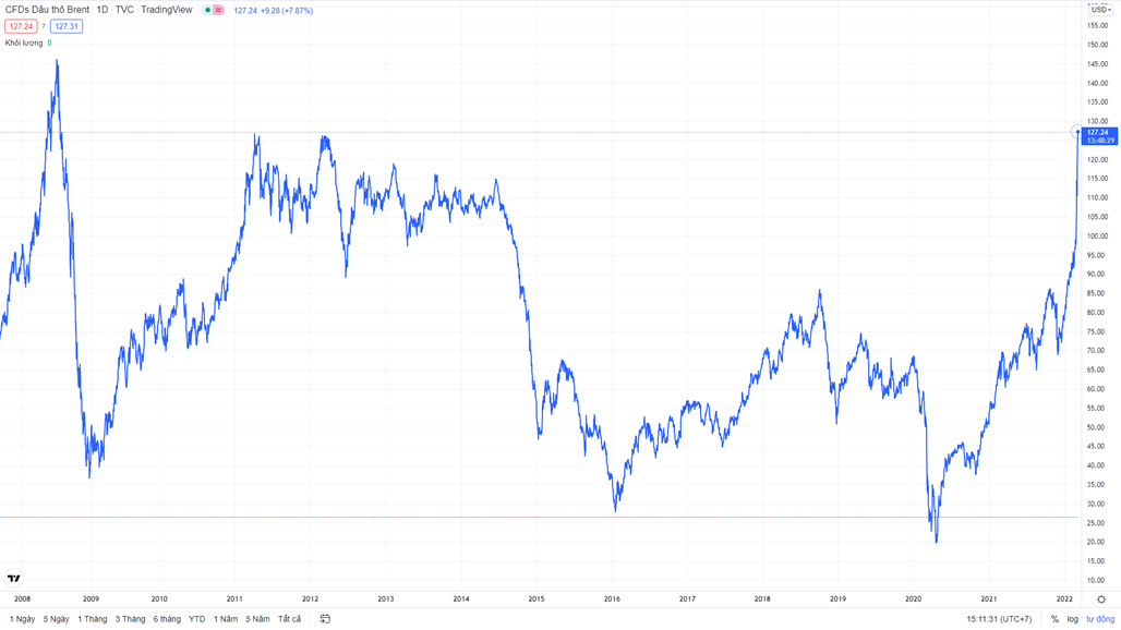 Biến động giá dầu từ 2008 đến 07/03/2022