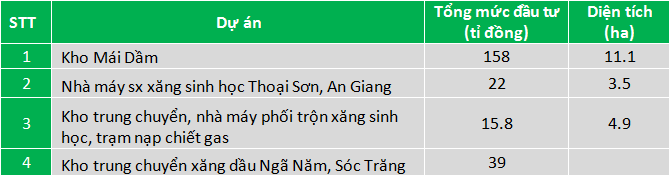 PSH còn hợp đồng thuê kho dài hạn với các đối tác đến 60,000 tấn/tháng tạo cơ sở để giữ vững vị thế hàng đầu tại thị trường kinh doanh xăng dầu ở Đồng bằng Sông Cửu Long. Hệ thống cơ sở vật chất phục vụ hoạt động kinh doanh liên tục được đầu tư mở rộng với một số dự án đang được triển khai như sau: