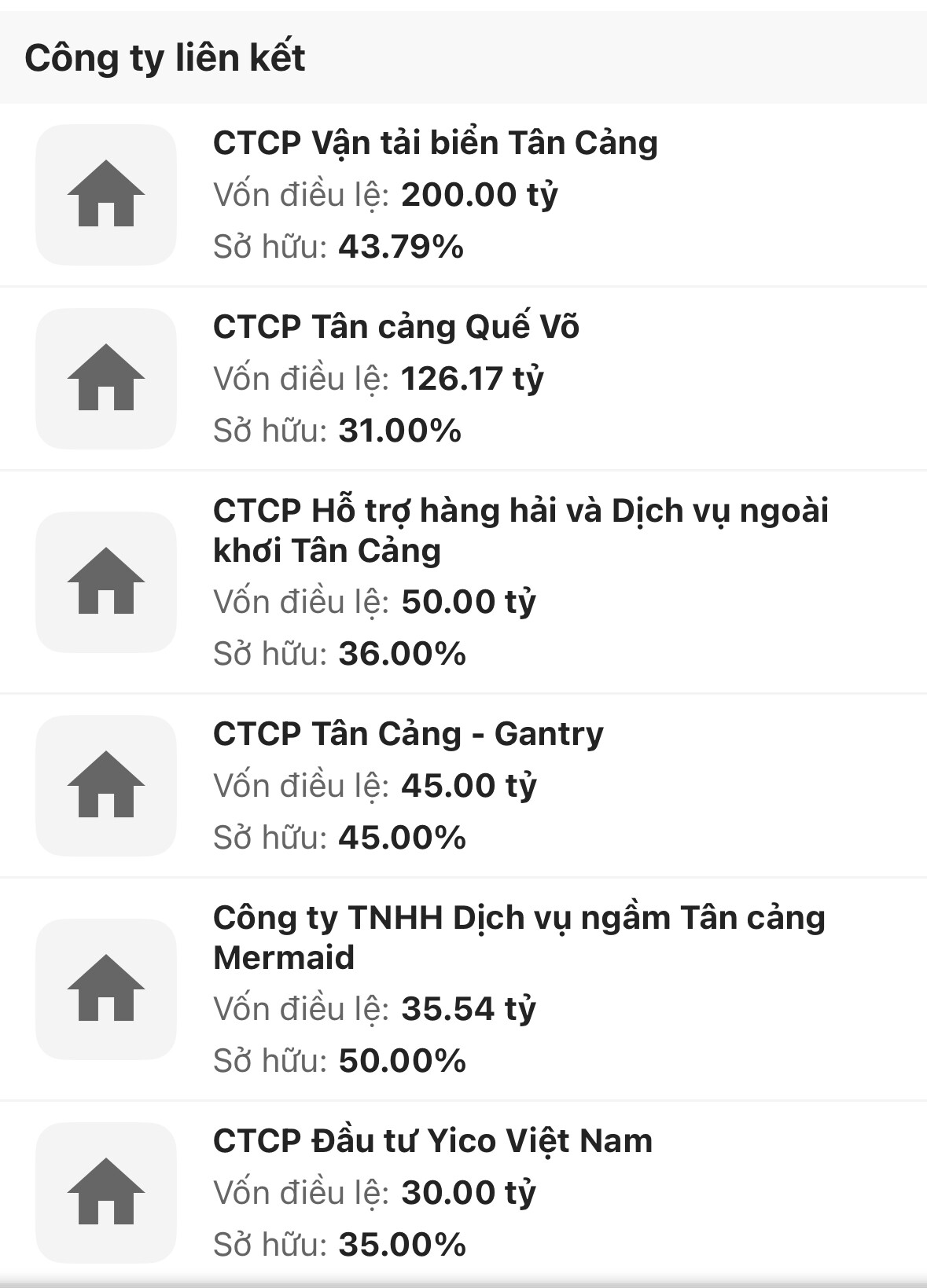 Gần đây nhất, ngày 25/4/2025, TOS nâng tỷ lệ sở hữu tại CTCP Đầu tư YICO Việt Nam từ 3,5% lên 51%, chính thức biến đơn vị này thành công ty con và đổi tên thành CTCP Đầu tư Hạ tầng công nghiệp Tân Cảng.