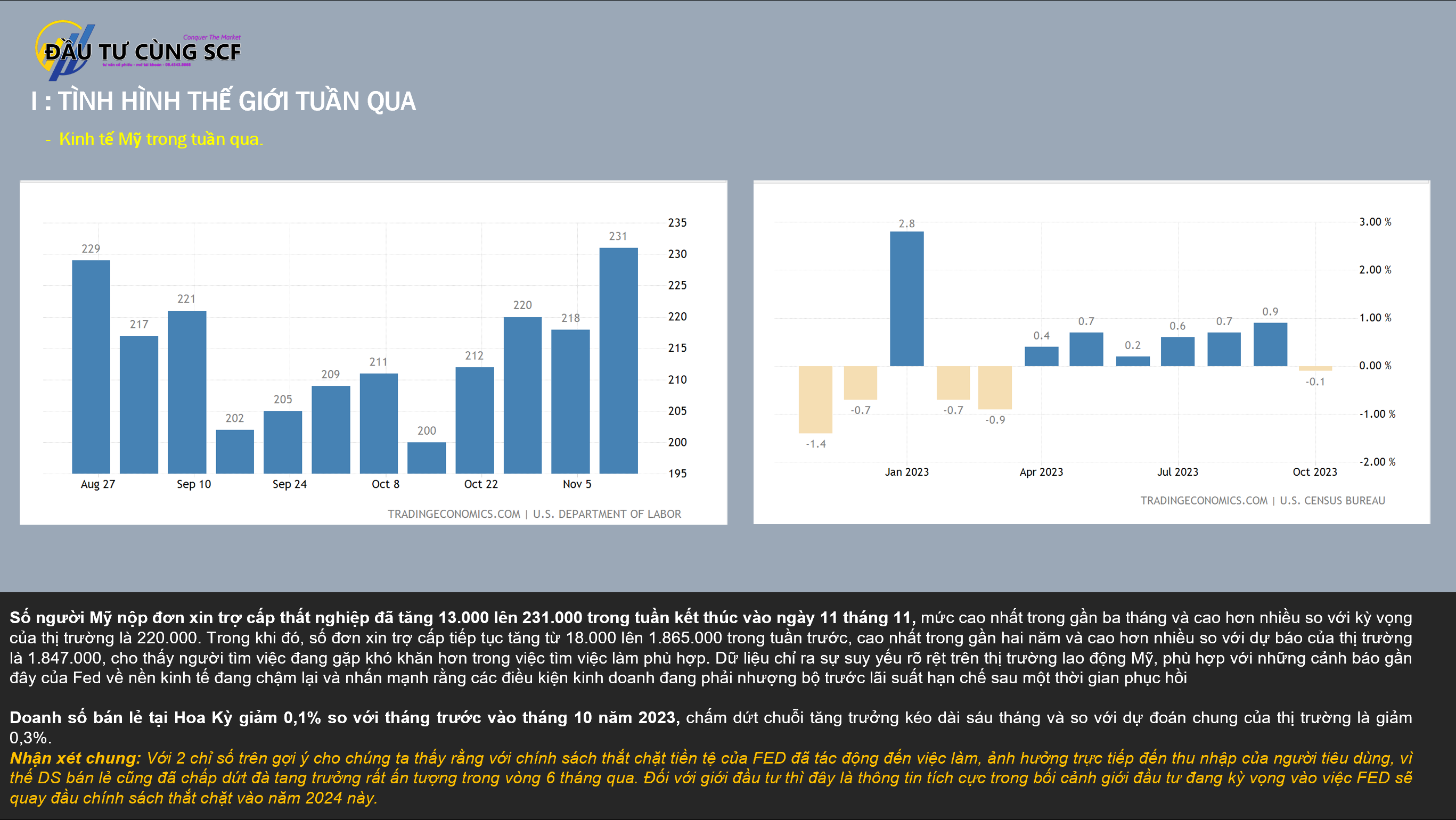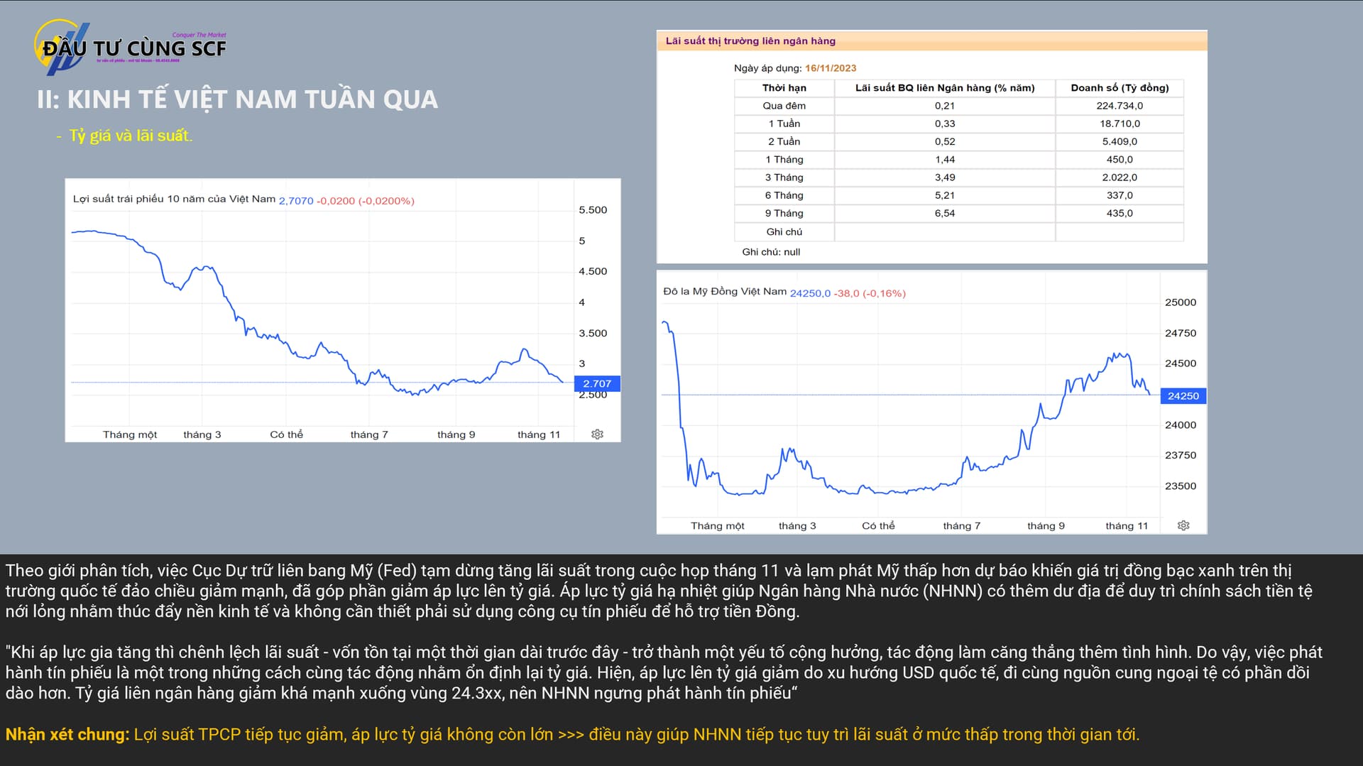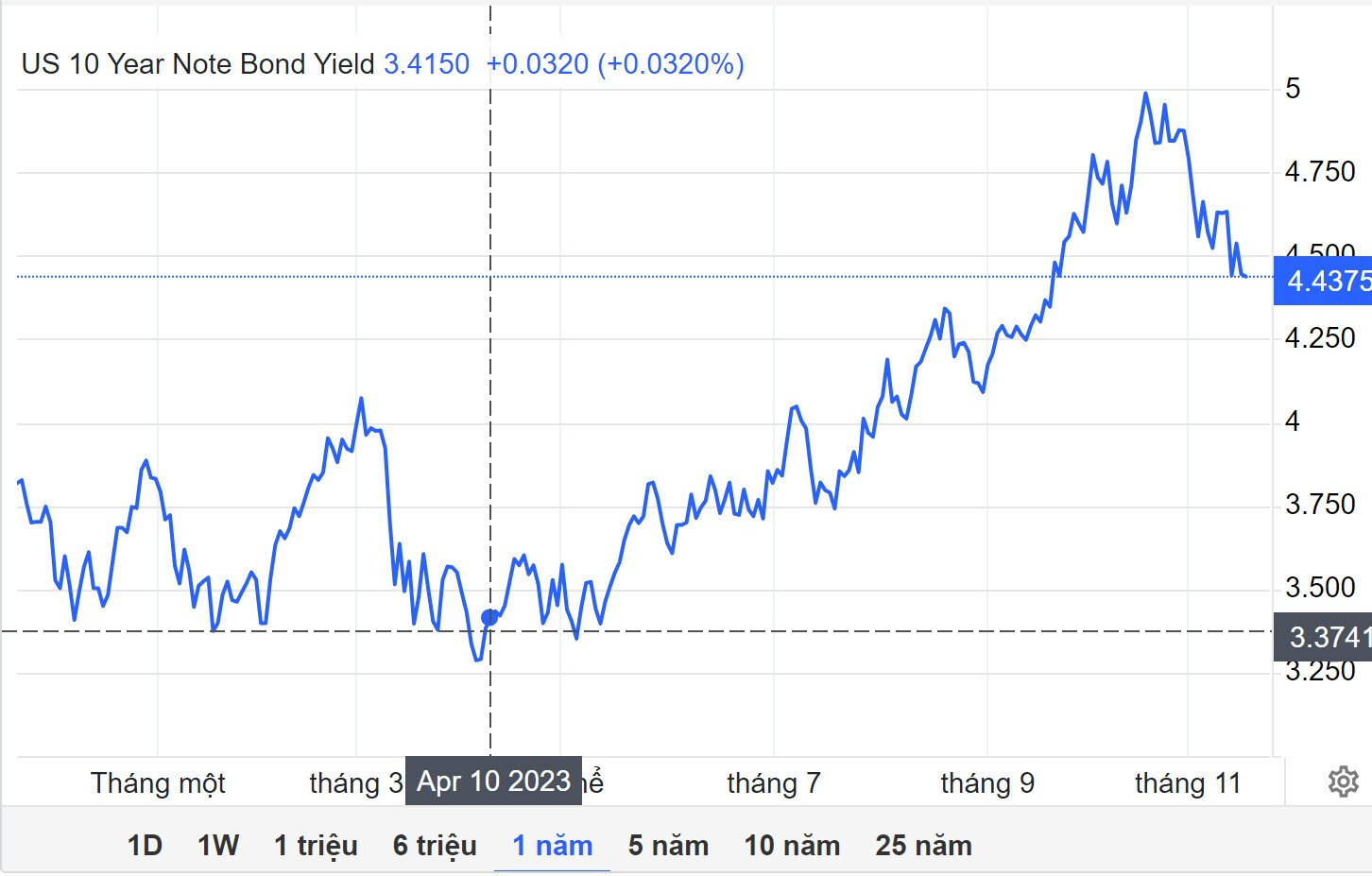 Lợi suất trái phiếu kho bạc Mỹ kỳ hạn 10 năm đã giảm xuống dưới mốc 4,45%, tiến gần đến mức thấp nhất kể từ giữa tháng 9 khi dữ liệu kinh tế mới củng cố lập luận để Fed kiềm chế không tăng lãi suất thêm trong chu kỳ hiện tại. Số đơn xin trợ cấp thất nghiệp ban đầu cao hơn nhiều so với kỳ vọng và tăng lên mức cao gần ba tháng, trong khi số đơn xin trợ cấp tiếp tục kéo dài mức tăng gần đây và tăng lên mức cao nhất trong hai năm, cho thấy những người thất nghiệp đang gặp khó khăn hơn trong việc tìm kiếm các vị trí sẵn có. Từ góc độ chính sách tiền tệ, kết quả đã tăng cường kêu gọi nới lỏng các điều kiện tài chính khi chỉ số CPI, PPI và thước đo giá nhập khẩu mở rộng xu hướng giảm phát của Hoa Kỳ. Bằng chứng cho thấy lạm phát có thể đạt đến mục tiêu trong các quý tới đã khiến thị trường tiền tệ định giá 50 điểm cơ bản khi Fed cắt giảm vào tháng 7, hỗ trợ giá Kho bạc trong tất cả các thời hạn.