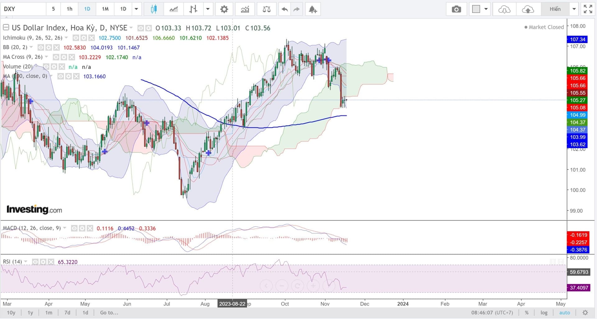 chỉ số DXY với biểu đồ này cho ta thấy khả năng DXY sẽ tiến về vùng 103 sớm thôi, và tại MA200 này sẽ có phản ứng tiếp.