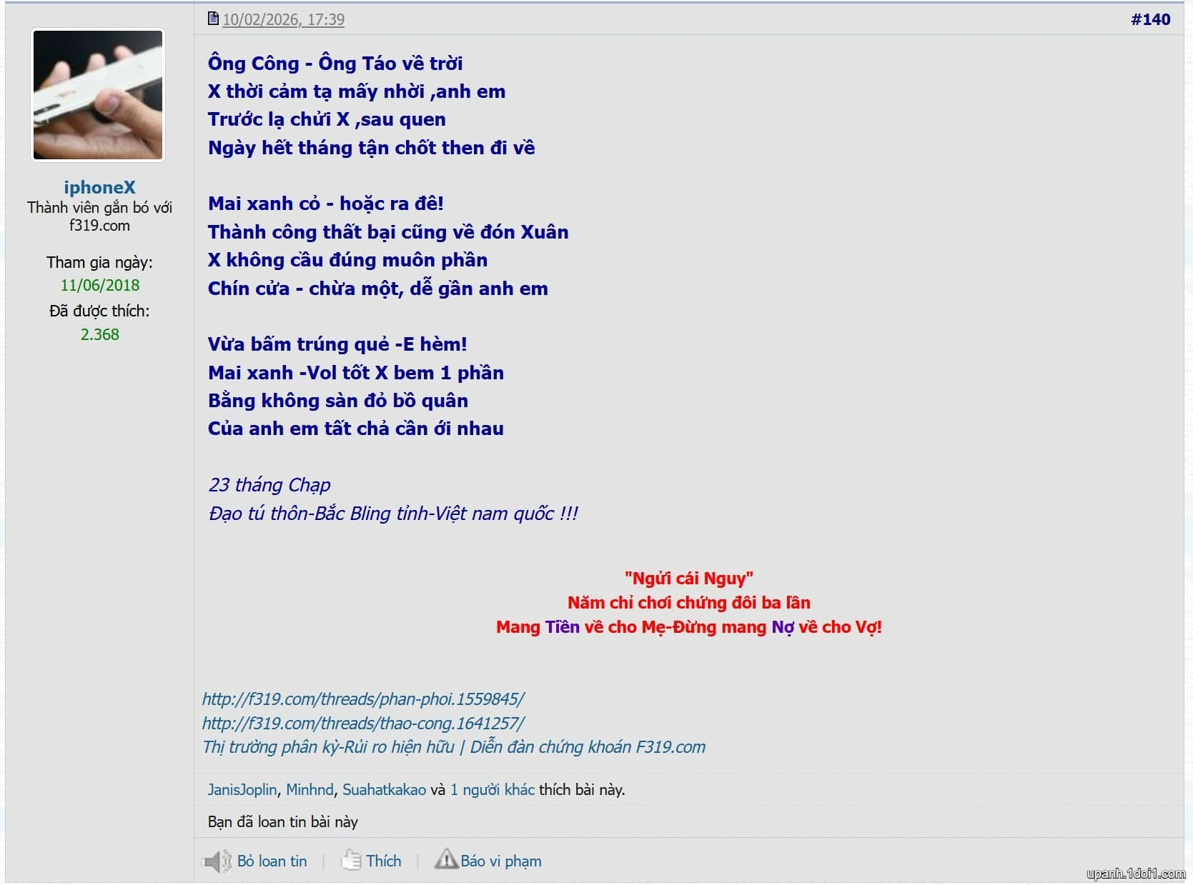 Chúc mừng anh sang f247 sinh hoạt với cộng đồng. Anh làng nghề tranh Đông Hồ nổi tiếng trên thế giới đó anh. Một dòng tranh làm nên tên tuổi Nghệ Thuật Việt Nam ạ