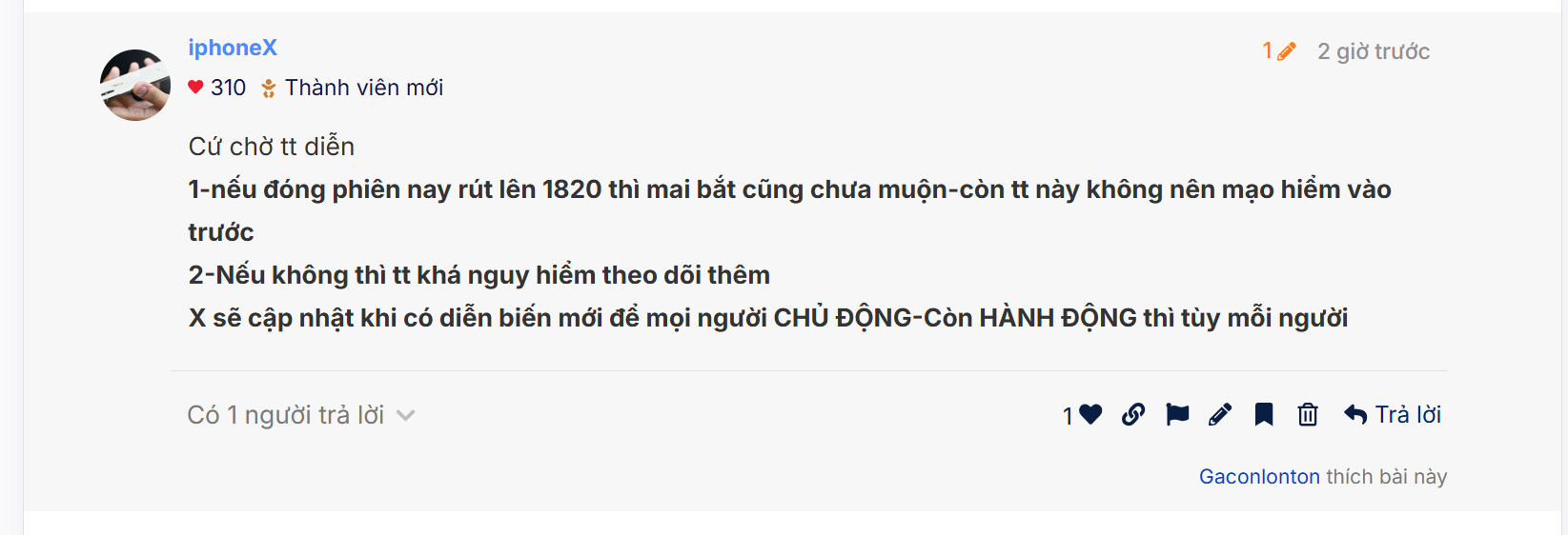 1-nếu đóng phiên nay rút lên 1820 thì mai bắt cũng chưa muộn-còn tt này không nên mạo hiểm vào trước