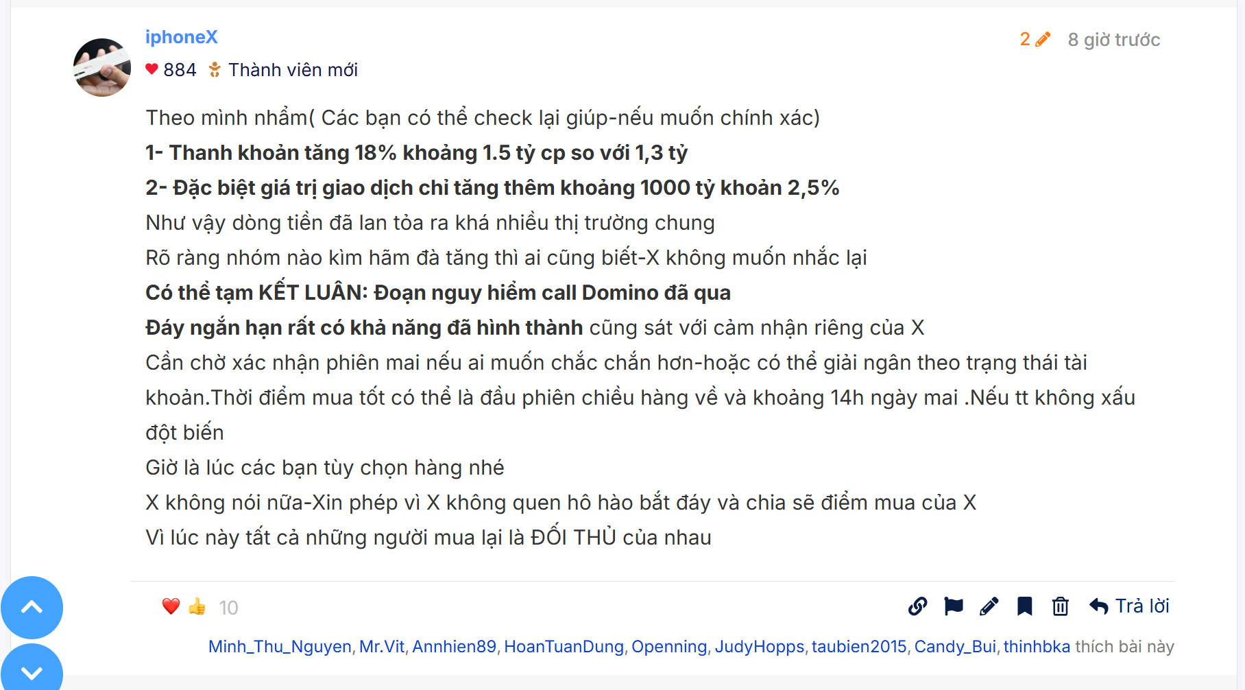 Tôi có lâu rồi bác từ nhịp dưới 9 cơ,tôi mua là tôi Hold lâu bác X ạ,tôi không biết lướt lát