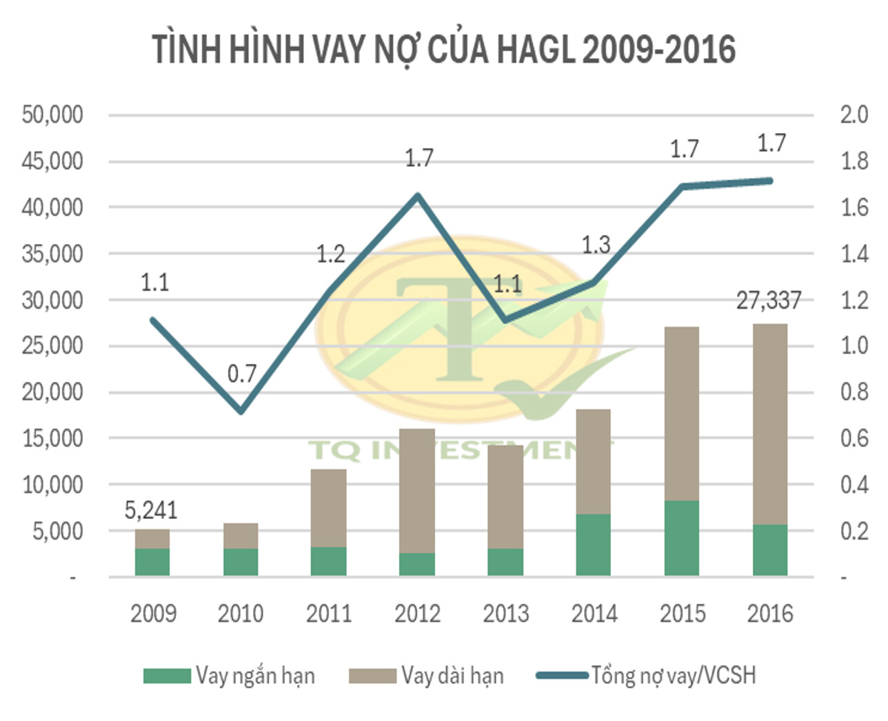 Một doanh nghiệp có tỷ trọng tổng nợ vay (nợ vay ngắn hạn + nợ vay dài hạn) trên tổng tài sản tăng vọt và duy trì ở mặt bằng cao trong thời gian dài => Một dấu hiệu xấu về chất lượng tài sản. Nếu việc gia tăng vay nợ đi kèm với khả năng chi trả lãi vay sụt giảm (EBIT/Lãi vay) đồng nghĩa doanh nghiệp đang khó để gánh được khoản nợ vay với tình trạng hoạt động kinh doanh suy yếu. HAG là một trường hợp điển hình cho việc vay nợ để mở rộng hoạt động kinh doanh nhưng kết quả không phải là trái ngọt trong giai đoạn 2010-2016 (Hình 3)