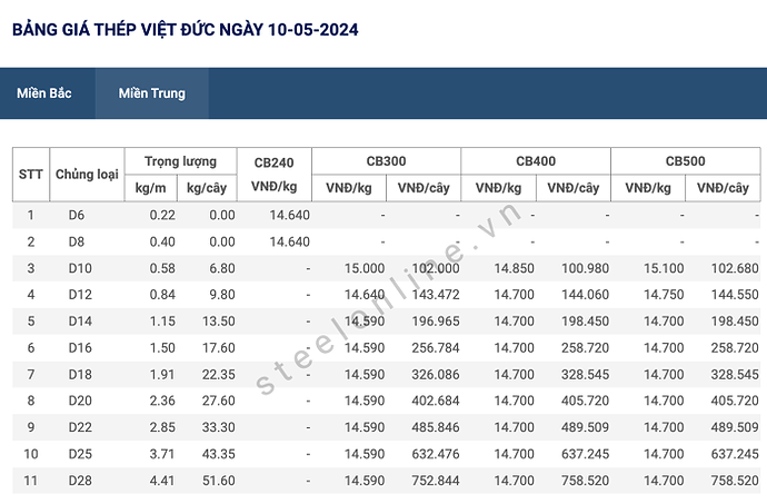 Khảo sát tại SteelOnline.vn cho thấy, giá thép CB240 và D10 CB300 tiếp tục đi ngang tại thị trường trong nước ngày 10/5.
