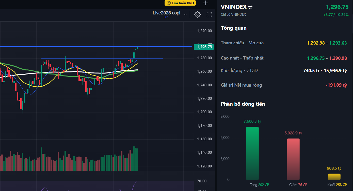 Tạm dừng mua mới cổ phiếu thị trường khi Vnindex > 1280 điểm, nắm giữ danh mục trung và dài hạn, theo dõi thị trường thêm liệu Vnindex vượt hẳn 1300 để hành động.