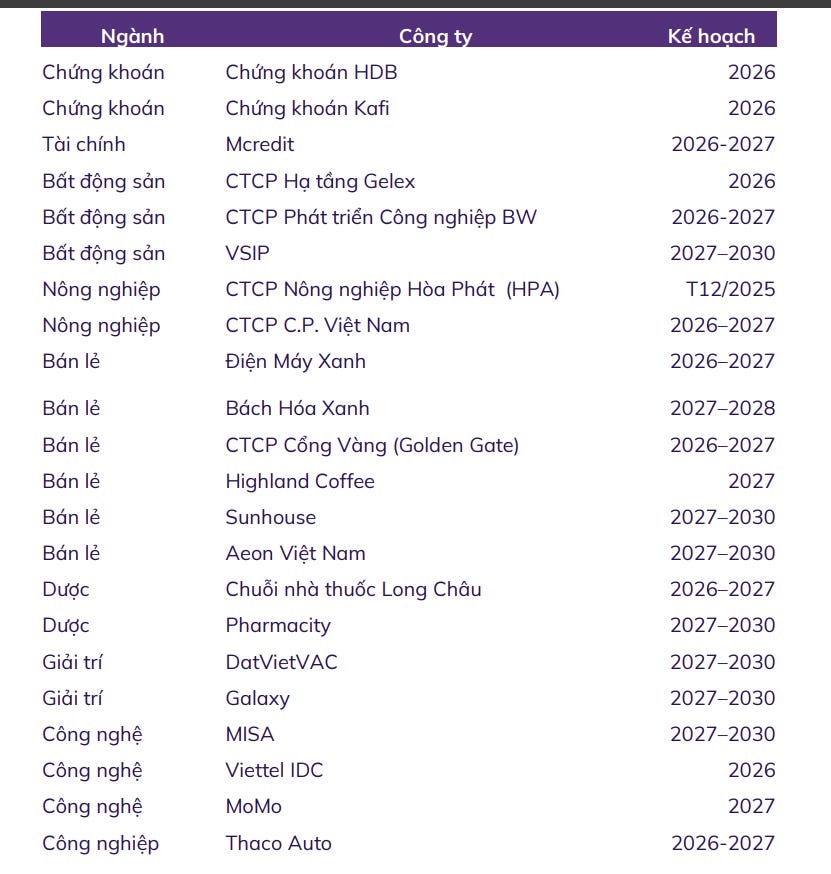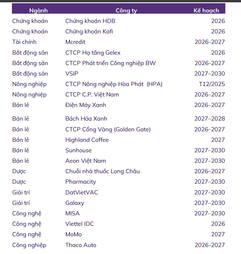 - Ước tính trong giai đoạn 2025-2027, các thương vụ IPO tiềm năng có thể đạt giá trị lên đến 47 tỷ USD, đem lại thêm nhiều cổ phiếu chất lượng cao, thu hút dòng vốn ngoại.