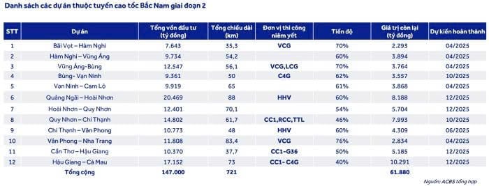 Đối với cao tốc đường bộ, các dự án thành phần cao tốc trục dọc Bắc Nam dự kiến sẽ hoàn thành vào cuối năm 2025.