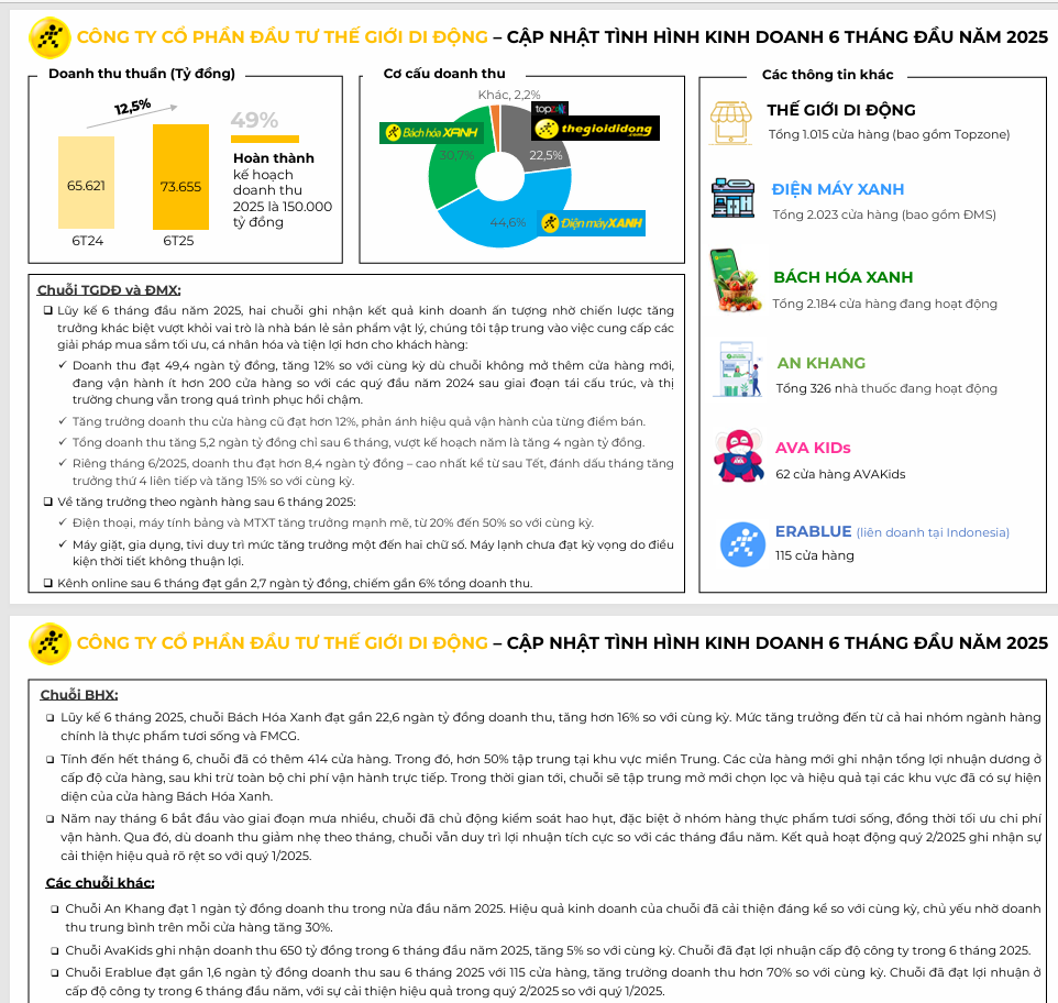 - Ước tính doanh thu H2/2025 hai chuỗi này đạt ~80–85 nghìn tỷ, lợi nhuận ước ~3.000–3.200 tỷ.