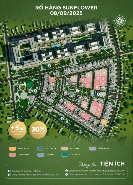 Đây là dự án đặt kế Sun Flower I, dự án Sun Flower II có quy mô 11.2ha, mở bán trước 100 căn biệt thự vào 8/2024 và 2500 căn hộ chưa xây, trong đó, thông qua môi giới, tính đến 8/9/2025, 80 căn biệt thự đã bán hết, mỗi căn từ 18 tỷ đến 23 tỷ, còn lại những căn lô gốc, diện tích lớn là chưa bán được. Theo môi giới giới thiệu, cách khai thác dự án sẽ là khách hàng đặt cọc xuống 30% → IJC khởi công xây nhà trong 12 tháng → khách bổ sung thêm 25% → IJC bàn giao nhà → Khách trả nốt 45%. Ngoài ra, hiện tại IJC đã bán gần hết, đến đầu tháng 9 sẽ khởi công hàng loạt, lộ trình 12 tháng về đích và bàn giao nhà.