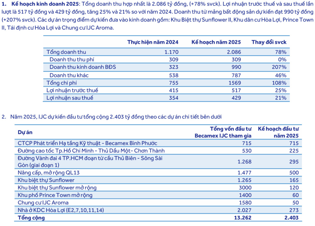 I) CẬP NHẬT SƠ BỘ VỀ KẾ HOẠCH KINH DOANH CỦA IJC TRONG 2025