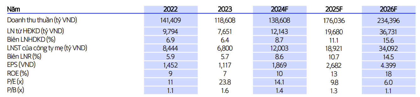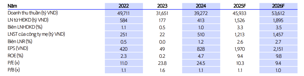 Hưởng lợi chênh lệch giá thép với Mỹ và EU. - Giá bán tăng nhanh hơn giá nguyên vật liệu. Từ đó, doanh thu 2025 ước tính đạt 176,036 tỷ (+27% YoY), LNST 2025 ước tính đạt 18,921 (+57% YoY).