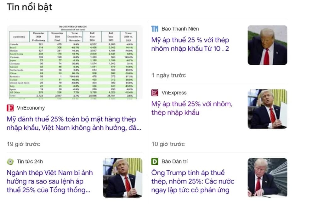 - Đối với Việt Nam, nhập khẩu thép vào Mỹ đã bị đánh thuế 25% kể từ năm 2018 theo Mục 232, vì vậy thép của Việt Nam không bị ảnh hưởng bởi việc tăng thuế này. Do đó, có rất ít tác động đến ngành thép Việt Nam liên quan đến xuất khẩu sang Mỹ