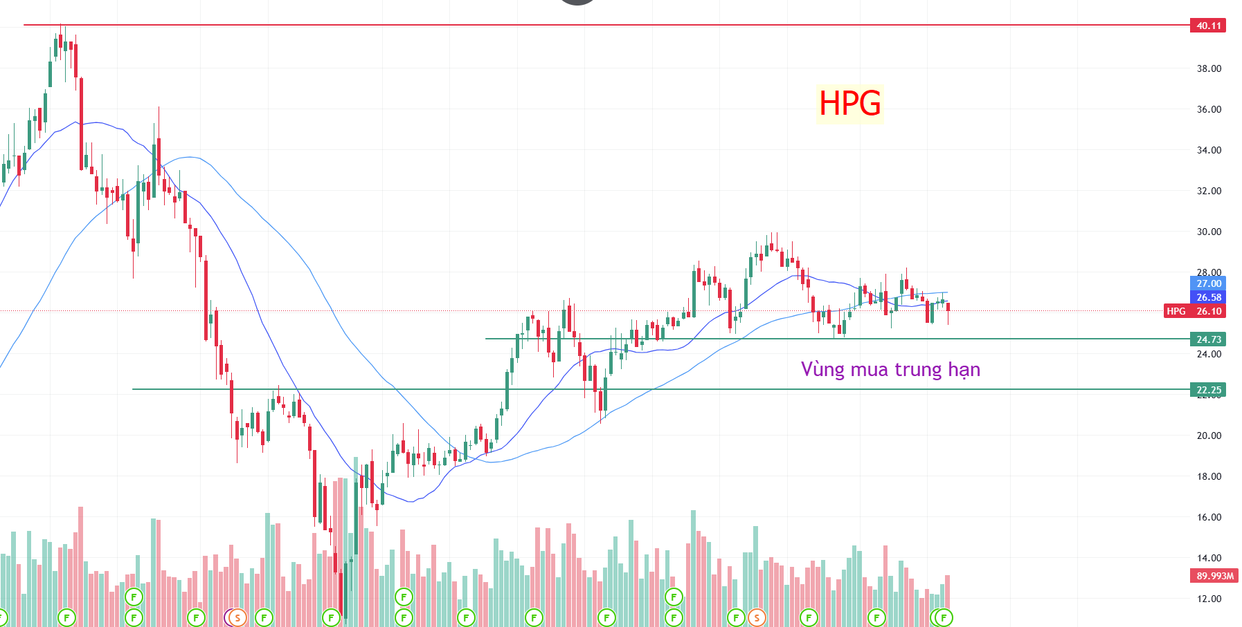 - HPG hiện tại chưa về vùng giá mua trung hạn, mặc dù dòng tiền vào tích cực và đã xác nhận tạo đáy trung hạn.