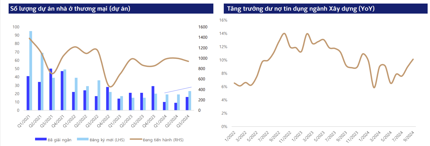 - Dư nợ tín dụng cho ngành xây dựng cũng ghi nhận tăng trưởng 10% YoY trong tháng 9/2024.
