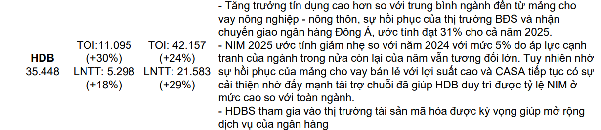 NIM dự kiến tiếp tục thu hẹp trong năm 2025 và ổn định vào năm 2026 do cạnh tranh gay gắt về lãi suất huy động. Tuy nhiên, sự phục hồi của thị trường bất động sản và các khoản vay lãi suất thả nổi sẽ cải thiện lợi suất tài sản.