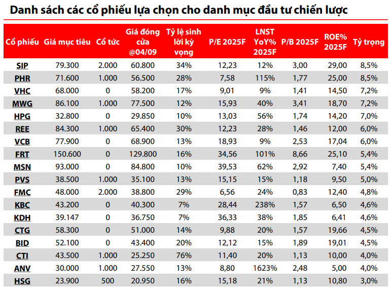 Tổng kết lại, tháng 9/2025 thị trường vẫn trong xu hướng tích cực với dòng tiền luân chuyển, nhưng rủi ro ngắn hạn vẫn hiện hữu. Nhà đầu tư nên duy trì sự thận trọng, linh hoạt cơ cấu danh mục và có thể cân nhắc tích lũy các mã được hưởng lợi từ đầu tư công và có định giá hấp dẫn.